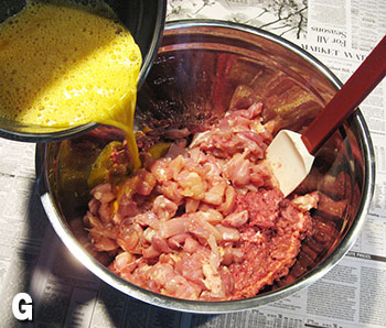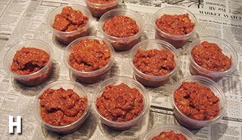 肉泥攪拌後裝到玻璃或塑膠容器,或是可以耐凍到零下二十度的塑膠袋,然後送去冷凍(照片H)。可以在當天或前一天,把要吃的量放冷藏解凍。