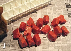 譯註:我自己也是習慣用剪刀剪去骨肉塊,加在肉泥中給貓啃。