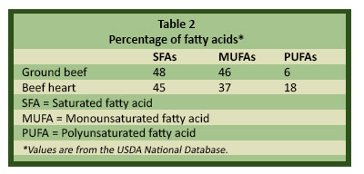 牛肉飽和脂肪高,多元不飽和脂肪低。如表二所示,人工飼養的反芻動物,即使是內臟的脂肪也主要是飽和脂肪;而野生動物通常是多元不飽和脂肪高於飽和脂肪(註3)。雖然很多專家對飽和脂肪的健康價值意見不同,但我的重點是 – 當你餵的是牛肉、羊肉和鹿肉時 – 飽和脂肪是不平衡的