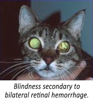 許多貓身上常常看不到高血壓的臨床症狀,往往是等到血液流到眼睛或視網膜造成失明,才發現高血壓的存在。