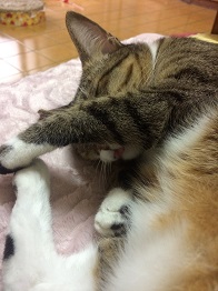 我的貓全都吃生肉泥,肉末會卡在牙縫,我會用紗布幫貓擦牙齒,擦到肉末時還蠻有成就感的。