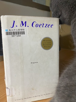書名「屈辱」,英文是Disgrace,從故事來看,應該是指做了丟臉、令人蒙羞的事,所以封面的設計故意把Disgrace印刷得非常小,如照片。這本書市圖中英文版都有。